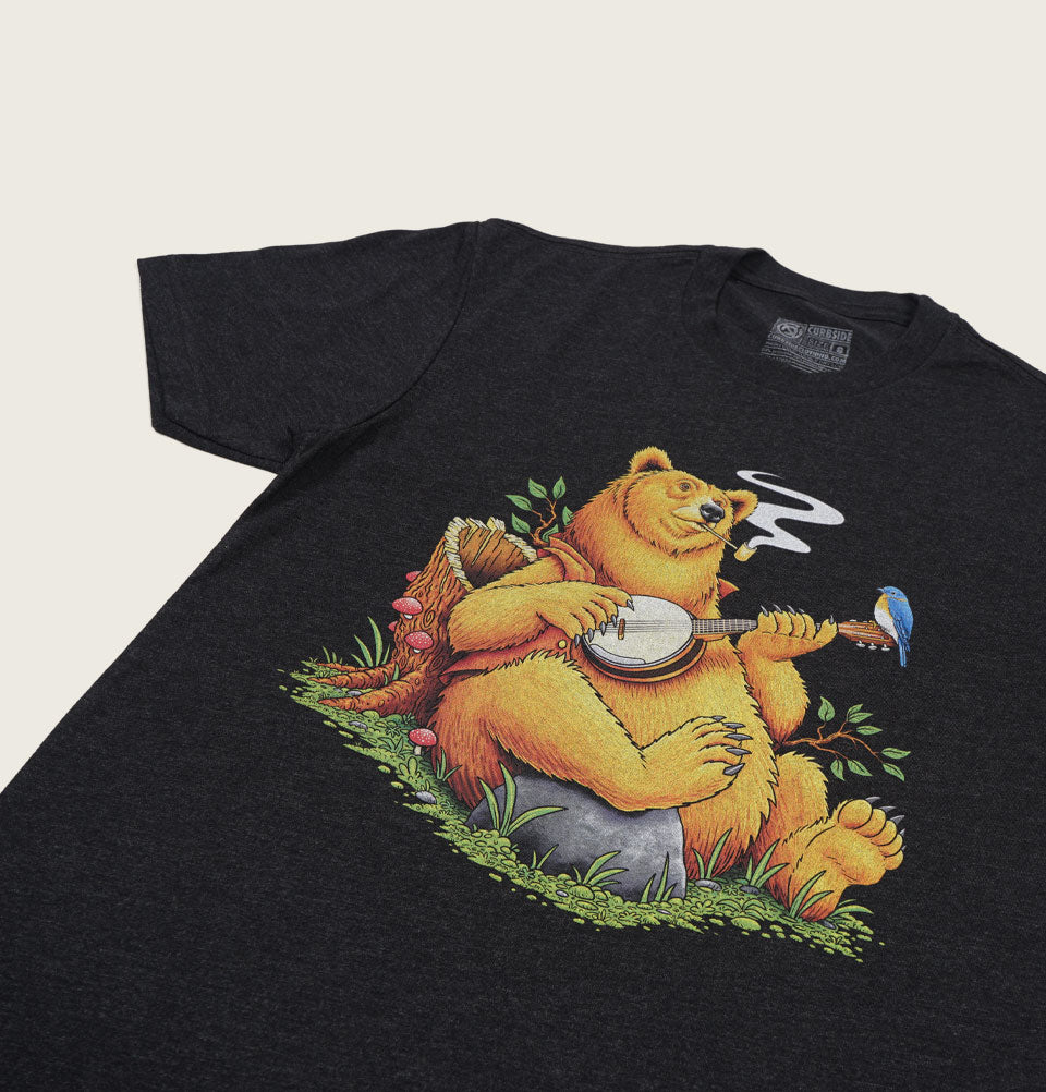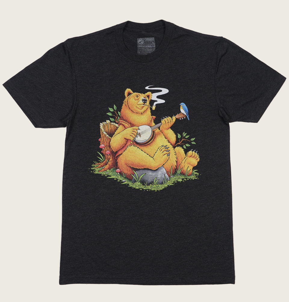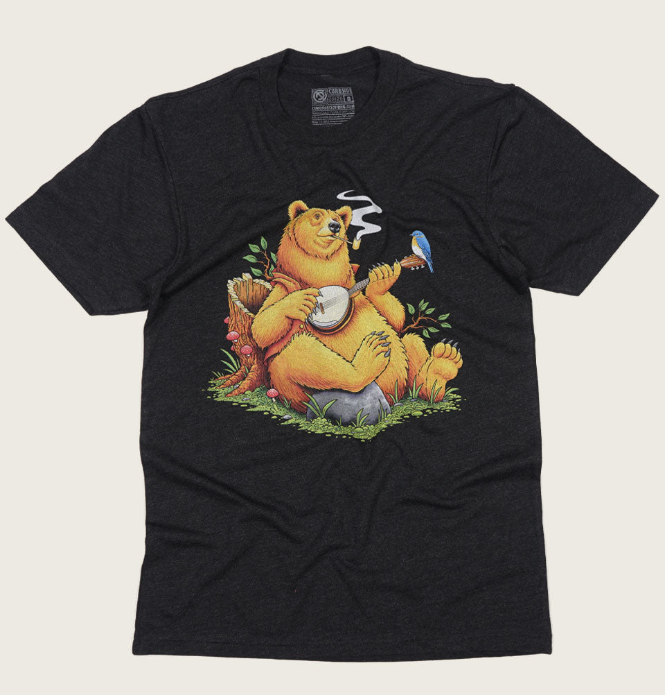 • This is DTG printed poly/cotton men's t-shirt by Curbside Clothing featuring Banjo Bear design by artist Ryan McCulloch.