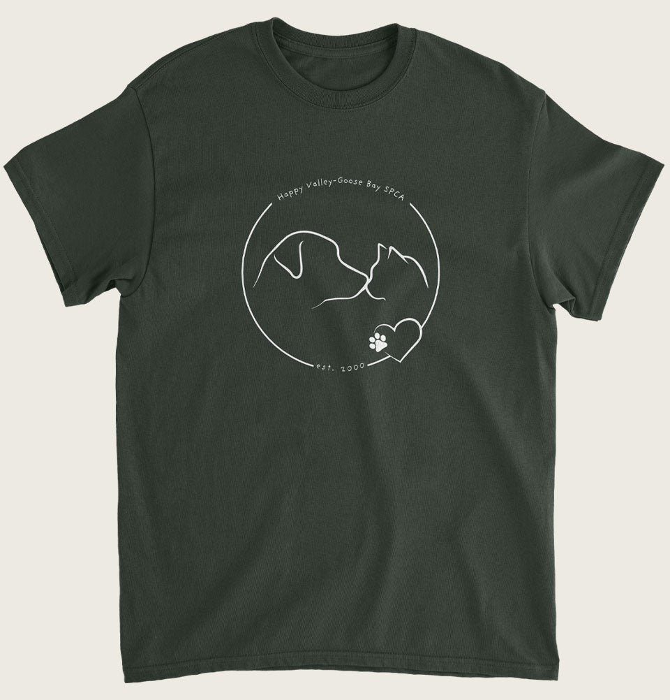 • Happy Valley-Goose Bay SPCA, a dedicated non-profit animal shelter that has been providing love, care, and second chances to animals in need since 2000! Every item you purchase helps fund essential services like food, medical care, shelter, and adoption efforts for rescued animals in Labrador. Not only will you be showing your support for animal welfare, but you’ll also be wearing it proudly. All proceeds go directly to the HVGB SPCA.
