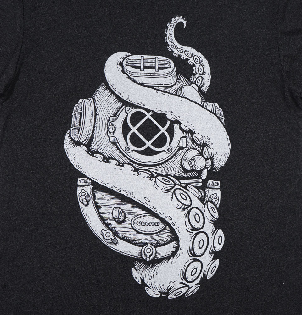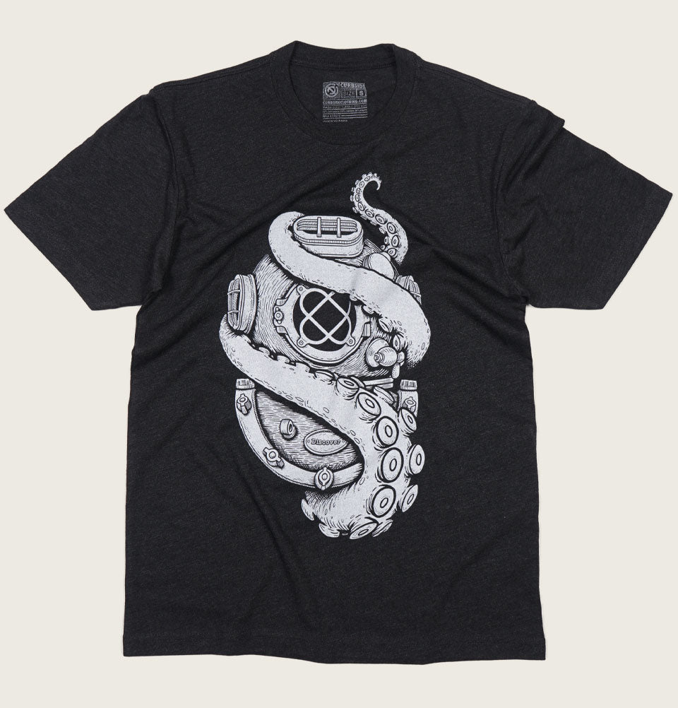 • This is DTG printed poly/cotton men's t-shirt by Curbside Clothing featuring Kraken Diving design by artist Ryan McCulloch.