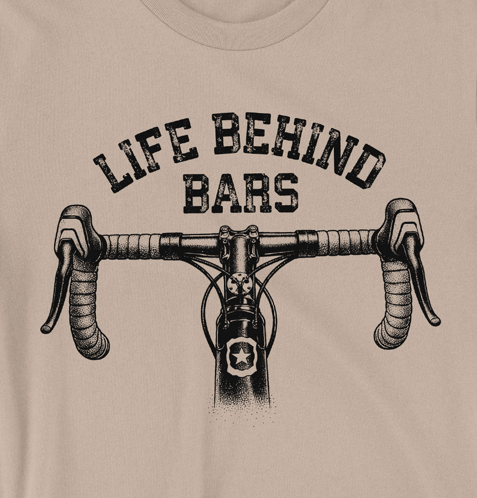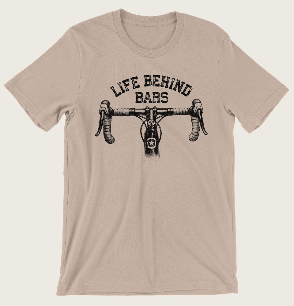 Unisex T-Shirt Pedal into comedy with this playful tee that flips the script on a classic phrase. Our "Life Behind Bars" design reimagines the saying as a love letter to cycling—where the bars in question are handlebars