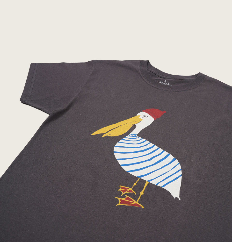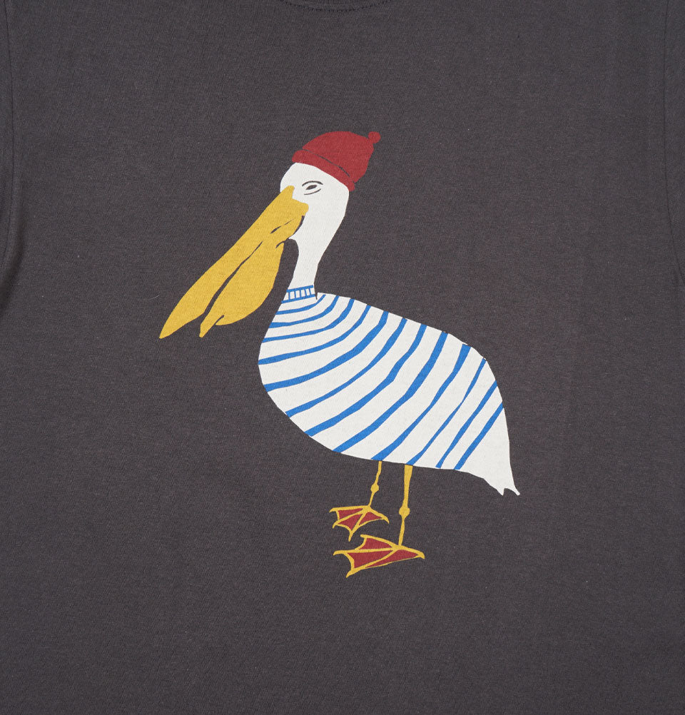 This salty sailor pelican in his sweater and beanie is always just chillin and puffin away at life. Rib collar. Neck and shoulder tape. Regular fit